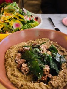 To start, a cocktail is a must at EMRE. The cocktail program here is adventurous with its mix of Mediterranean inspiration and California creativity that pairs beautifully with mezze. I particularly enjoyed a refreshing citrus-forward aperitif (often served on arrival) while my husband savored a mezcal-inspired cocktail with just a hint of smoke — perfect for whetting the appetite. The wine list leans heavily on both Paso Robles producers and international selections, which makes wine pairing a real highlight.